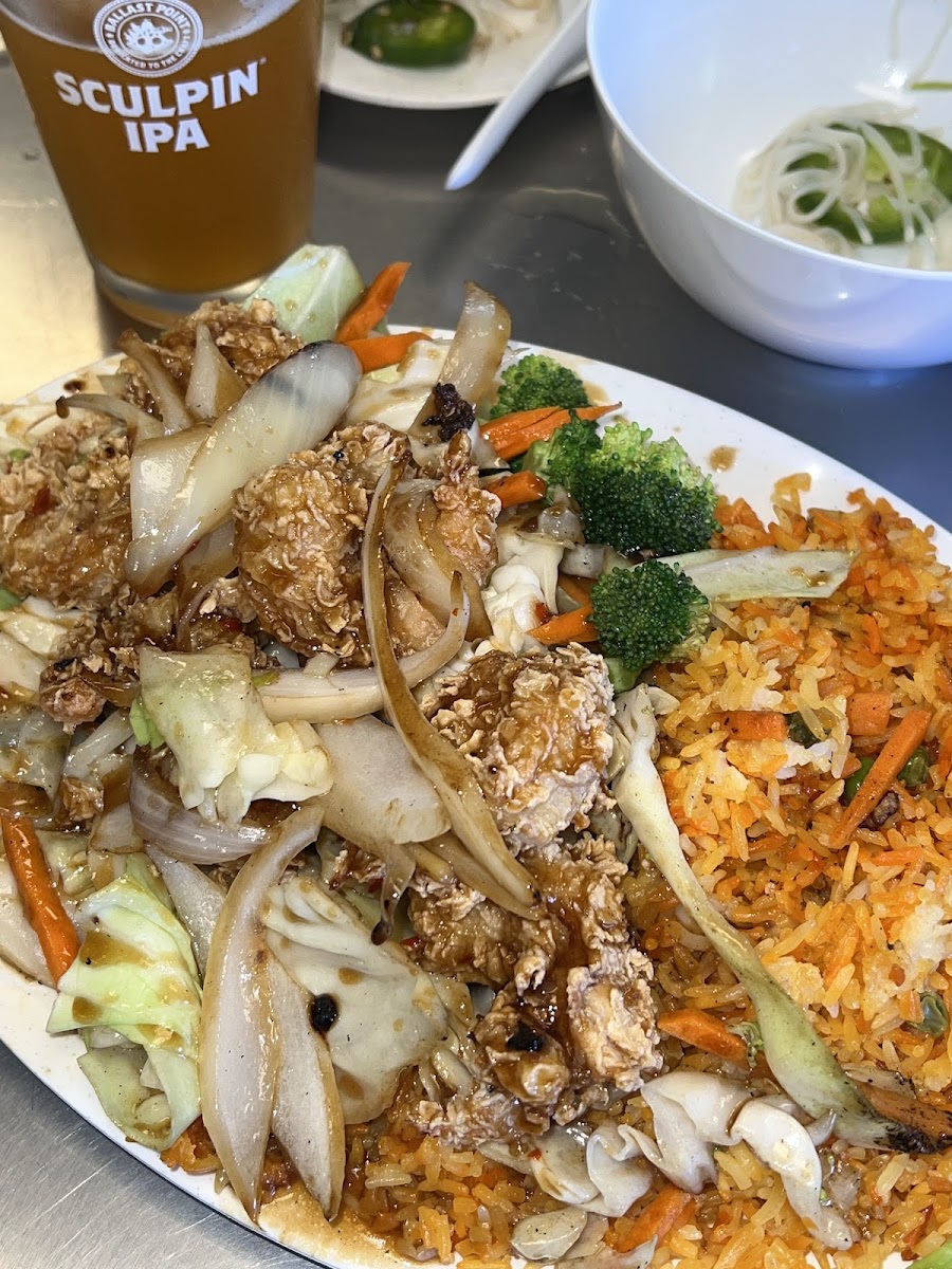 The standout offerings here are truly something to write home about. Dive into their renowned Combination Pho, a heartwarming bowl brimming with tender rare beef, chicken, meatballs, and shrimp, all swimming in a flavor-packed broth. Each sip warms your soul, creating a comforting embrace that only a well-crafted pho can provide. For those who prefer a vegetarian option, their Vegetarian Pho does not disappoint, featuring a generous amount of tofu complemented by fresh herbs and vegetables, delivering that classic pho experience without compromising on flavor.